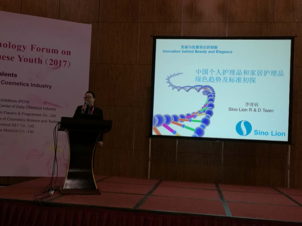 Marketing Director from SINO LION, Mr. Qingfan Li, gave a presentation-“The Green Trend of Raw Materials in Chinese Personal and Household Care Products”, introducing the concept, development history and 12 principles of Green Chemistry at the 2017 Youth Cosmetics Technology Salon of China in the morning of Feb. 22th. He also mentioned that as early as in 1977, there already was literatures about green concepts and these concepts are used more widely today. With deepening this concept, especially in the 20s, it will gradually become more clear and quantifiable. Therefore, the standards of green chemistry will be more unified.